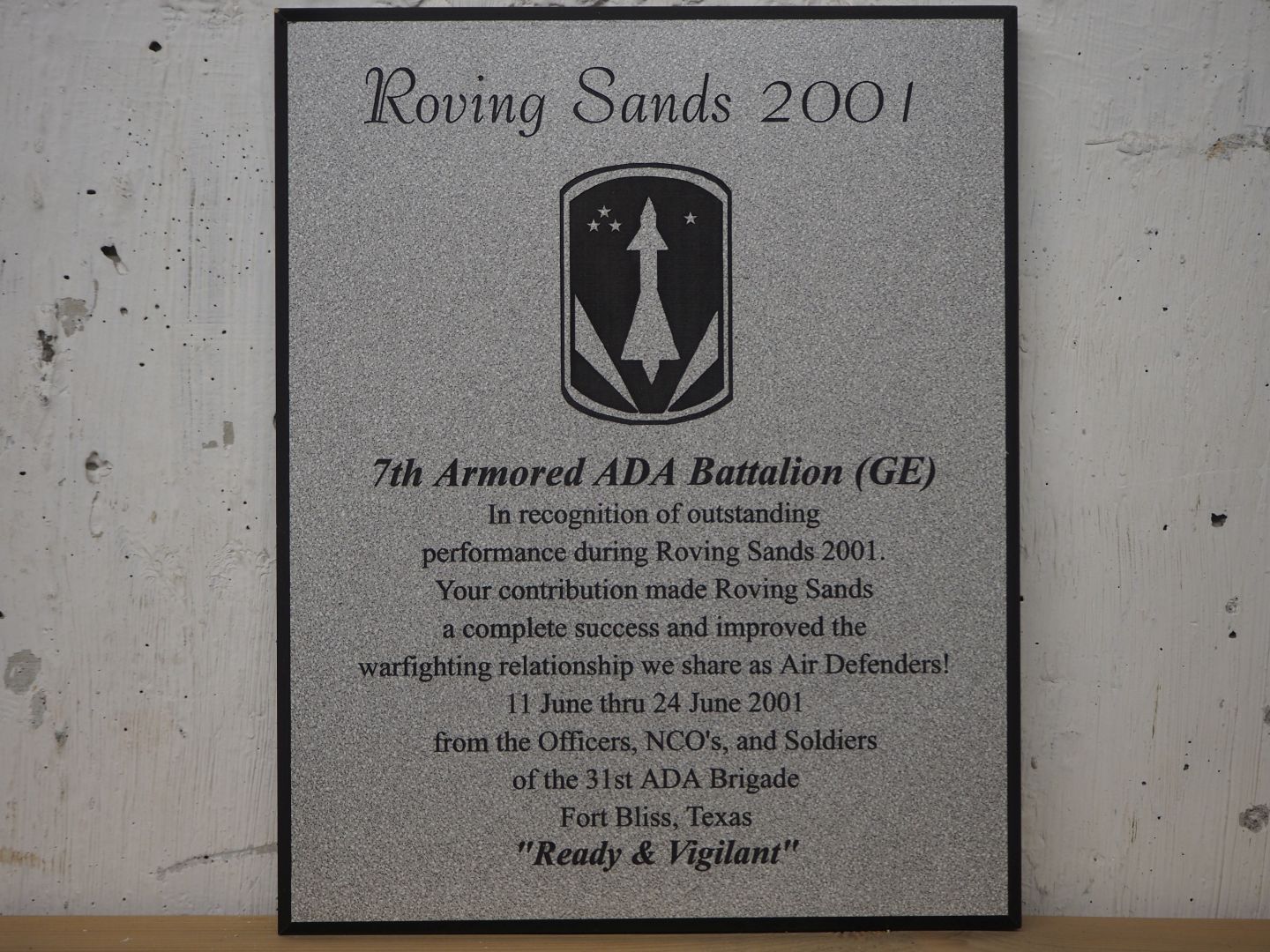 8. (Fla 7) Erinnerungsschild ROVING SANDS 2001